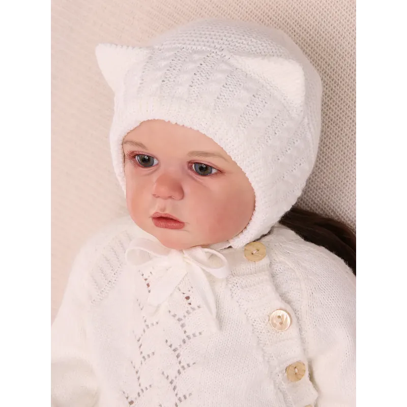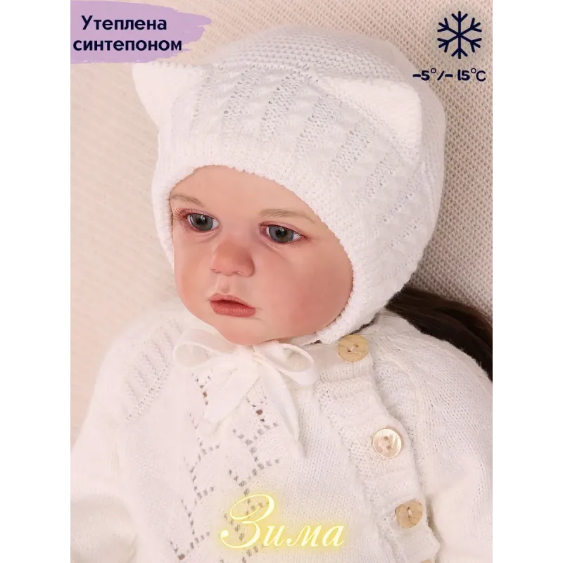Вязаный чепчик для малыша станет прекрасной первой шапочкой для малыша. Круглая форма облегает лицо подчеркивая его очаровательные черты, а ушки на шапке смотрится очень мило на любом малыше. Идеально подходит для ребенка который только что появился на свет и готовится к выписке из роддома. Шапочка выполнена из мягкого и дышащего материала обеспечивая оптимальный комфорт, подходит для деликатной кожи младенца защищая от весеннего холода и ветра помогая создавать благоприятные условия для его развития и роста. Ее можно носить как на улице, так и дома. Чепчик выполнен из высококачественных материалов, он также очень прочный и долговечный. Шапочка подойдет для мальчика и девочки с первых дней жизни. Чтобы чепчик как можно дольше сохранял первоначальный вид рекомендуем бережную стирку при температуре 30 С, сушку без отжима на горизонтальной плоскости.