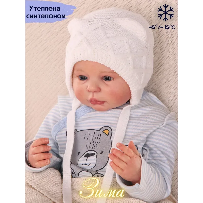 Вязаный чепчик для малыша станет прекрасной первой шапочкой для малыша. Круглая форма облегает лицо подчеркивая его очаровательные черты, а ушки на шапке смотрится очень мило на любом малыше. Идеально подходит для ребенка который только что появился на свет и готовится к выписке из роддома. Шапочка выполнена из мягкого и дышащего материала обеспечивая оптимальный комфорт, подходит для деликатной кожи младенца защищая от весеннего холода и ветра помогая создавать благоприятные условия для его развития и роста. Ее можно носить как на улице, так и дома. Чепчик выполнен из высококачественных материалов, он также очень прочный и долговечный. Шапочка подойдет для мальчика и девочки с первых дней жизни. Чтобы чепчик как можно дольше сохранял первоначальный вид рекомендуем бережную стирку при температуре 30 С, сушку без отжима на горизонтальной плоскости.
