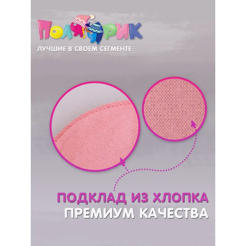 Шапка шлем для девочки ПОЛЯЯРИК идеальный вариант головного убора в период холодной осени и зимы, является надежной защитой от неприятных погодных условий. Изделие в районе головы утеплено синтепоном, а подклад шапки шлема зимнего выполнен из хлопка и эластана, что обеспечивает мягкость и приятное ощущение при носке. Кроме того, хлопковый подклад предоставляет дополнительную теплоизоляцию, сохраняя тепло на протяжении длительного времени. Преимуществом данной модели шлема является наличие манишки, которая выполняет функцию шарфа и плотно закрывает шею ребенка. Манишка утеплена только хлопковым подкладом, без дополнительного утепления.