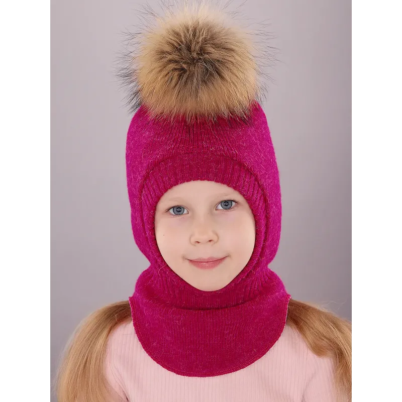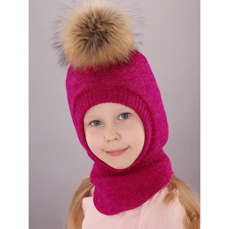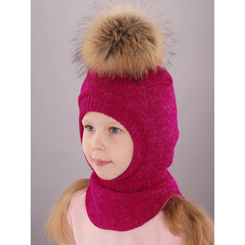 Шапка шлем для девочки ПОЛЯЯРИК идеальный вариант головного убора в период холодной осени и зимы, является надежной защитой от неприятных погодных условий. Зимний шлем для украшен съемным помпоном из меха енота, который прекрасно дополнит и украсит повседневный образ ребенка.