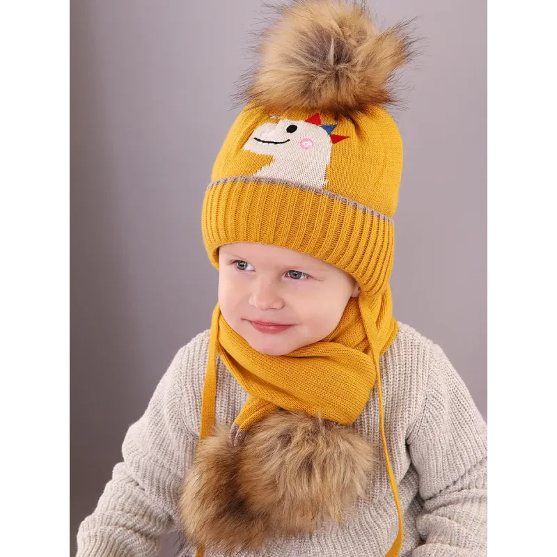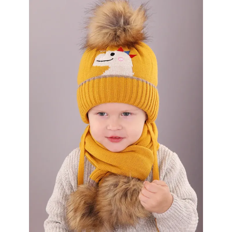 Детская шапочка на завязках с шарфом ПОЛЯЯРИК для маленьких модников. Модель с отворотом, выполненная из мягкой шерсти с добавлением акрила, обеспечит комфорт и тепло вашему моднику. Благодаря утеплителю из синтепона, головной убор идеально подойдет для зимы и холодной осени. Подкладка из хлопка и эластана гарантирует приятное соприкосновение с кожей. Украшен комплект искуственными помпонами. Яркий шарф будет стильно выглядеть , если завязать его в узел поверх куртки. Рекомендована исключительно ручная стирка при 30 градусах, не выкручивать, отжим в полотенце, сушить горизонтально. Сделано в РОССИИ, с заботой о наших детях!