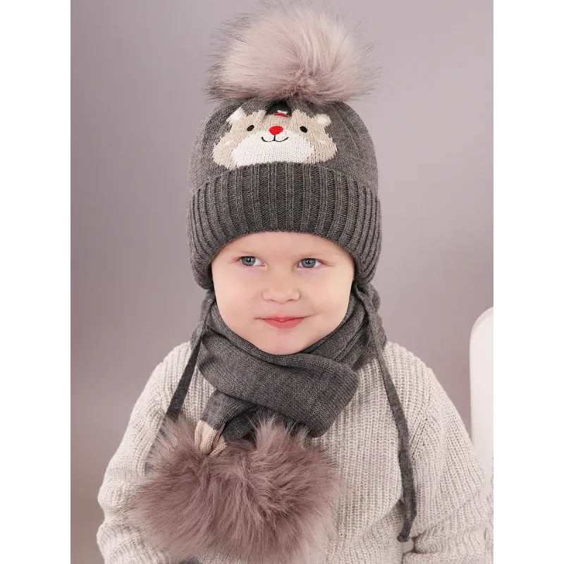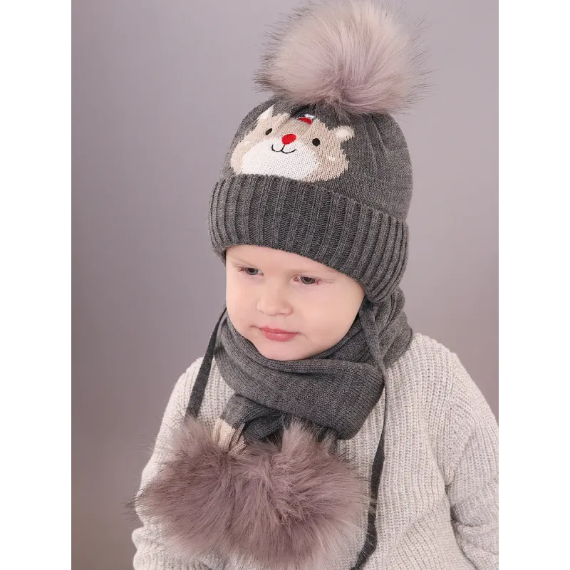 Детская шапочка на завязках с шарфом ПОЛЯЯРИК для маленьких модников. Модель с отворотом, выполненная из мягкой шерсти с добавлением акрила, обеспечит комфорт и тепло вашему моднику. Благодаря утеплителю из синтепона, головной убор идеально подойдет для зимы и холодной осени. Подкладка из хлопка и эластана гарантирует приятное соприкосновение с кожей. Украшен комплект искуственными помпонами. Яркий шарф будет стильно выглядеть , если завязать его в узел поверх куртки. Рекомендована исключительно ручная стирка при 30 градусах, не выкручивать, отжим в полотенце, сушить горизонтально. Сделано в РОССИИ, с заботой о наших детях!