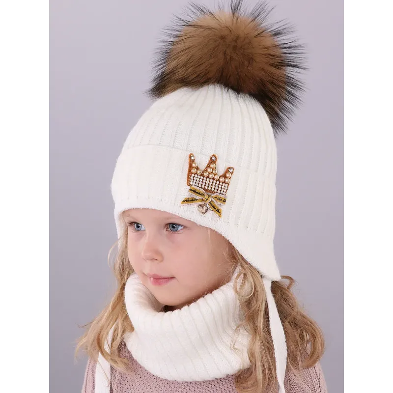 Шапка вязаная теплая для девочки с завязками (с утеплителем из синтепона) - идеальное решение для защиты от холода и ветра в холодные зимние дни. Шапка выполнена из высококачественных материалов, включая натуральный мех енота. Помпон является не только ярким акцентом, но и практическим элементом, позволяющим легко и быстро отличиться. Завязки на шапке обеспечивают надежное и удобное крепление, что позволяет шапке оставаться на месте даже во время активных игр и забав. Благодаря этому ваш ребенок не только будет защищен от холода, но и всегда будет выглядеть стильно и аккуратно. Утепление из синтепона гарантирует оптимальную теплоизоляцию и сохранение тепла на протяжении долгих часов на улице. Снуд с подкладом из флиса дополняет образ маленькой модницы. По уходу за изделием - бережная ручная стирка при t 30 C. Для придания помпону формы и объема рекомендуем расчесать его мелкой расческой или щеткой для животных.