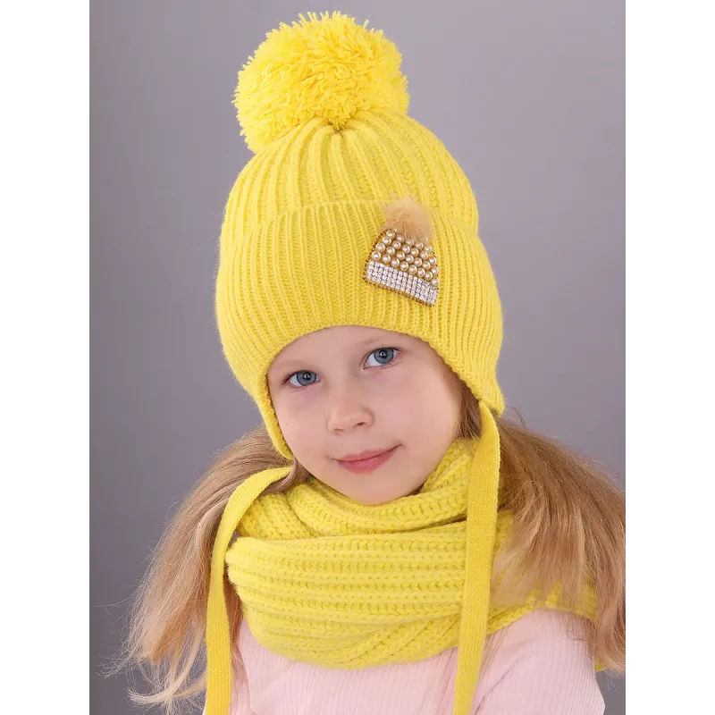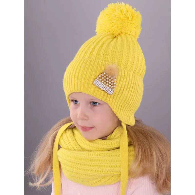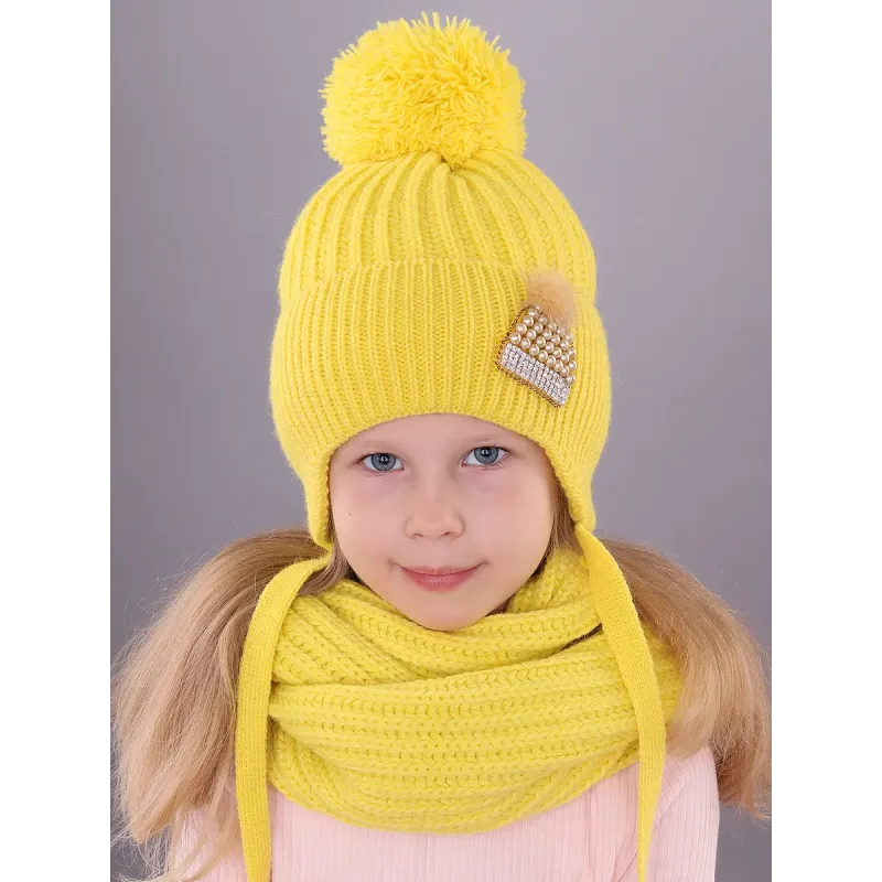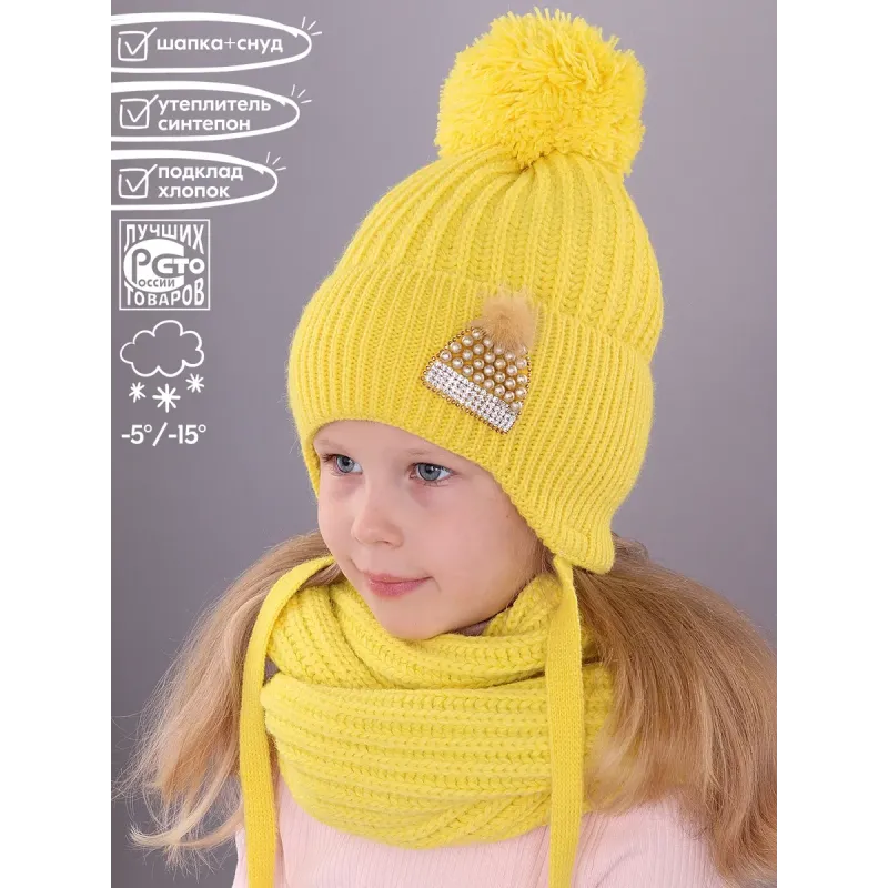 Вязаный зимний комплект шапочка и снуд-шарф ПОЛЯЯРИК утеплен синтепоном и хлопковом подкладом, хорошо тянется, не колется, дарит тепло и комфорт. Комплект прекрасно дополнит и украсит повседневный образ юной модницы. Украшения на шапке выполнено в ручную. Рекомендованные условия по уходу - только бережная ручная стирка при t 30 C. Тереть, скручивать и вытягивать изделие не рекомендуется.