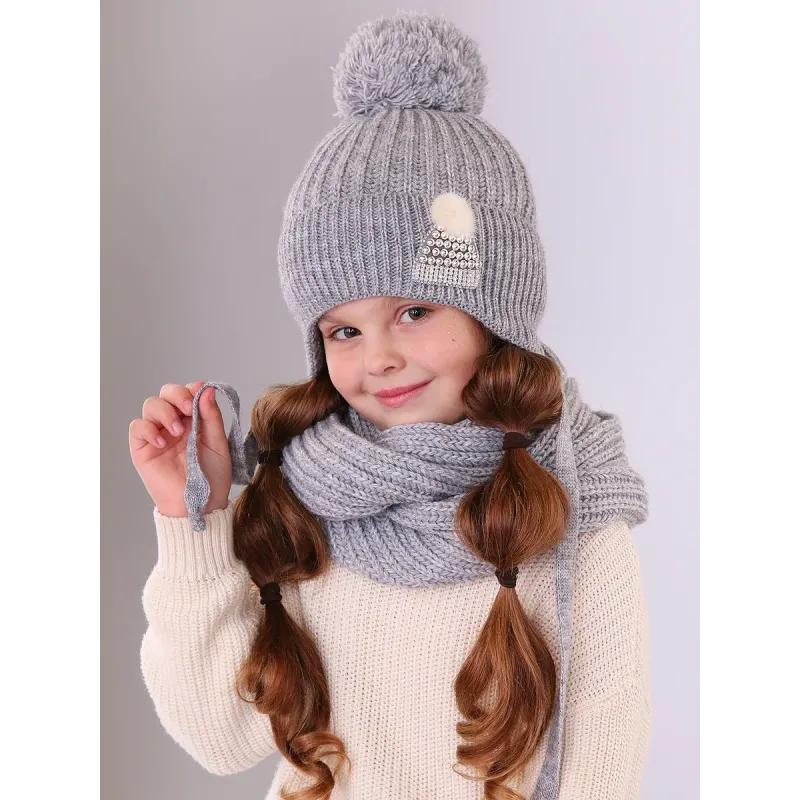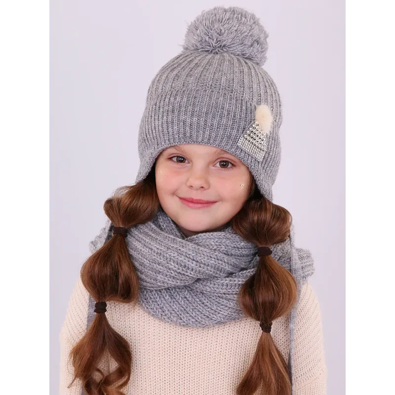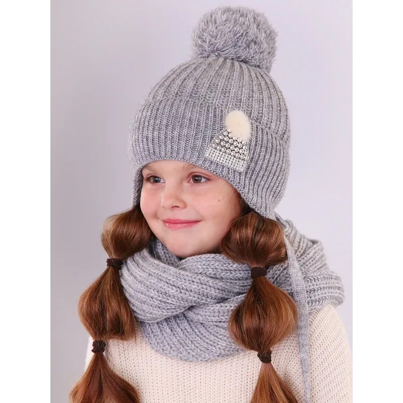Вязаный зимний комплект шапочка и снуд-шарф ПОЛЯЯРИК утеплен синтепоном и хлопковом подкладом, хорошо тянется, не колется, дарит тепло и комфорт. Комплект прекрасно дополнит и украсит повседневный образ юной модницы. Украшения на шапке выполнено в ручную. Рекомендованные условия по уходу - только бережная ручная стирка при t 30 C. Тереть, скручивать и вытягивать изделие не рекомендуется.